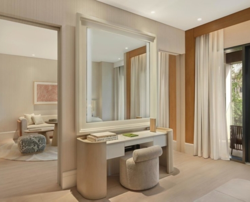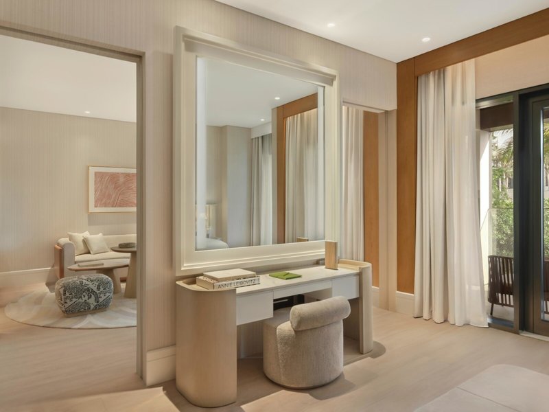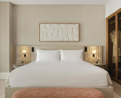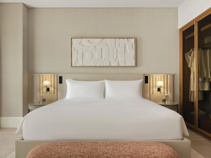 Doppelzimmer: Die Doppelzimmer sind ca. 40 m² groß und verfügen über ein Bad mit Dusche/WC, Föhn (Dyson), Bademäntel/Slipper, Klimaanlage, Safe, Minibar (gegen Gebühr), Wi-Fi (inklusive), Smart-TV. Gegen Aufpreis auch mit Resort View (2RR) oder Meerblick (DM) buchbar.