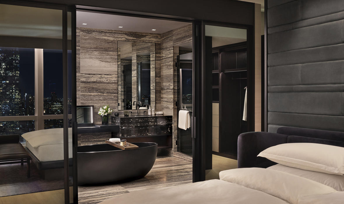 The rooms are designed as "temples of regeneration" and offer modern comfort and a calming atmosphere that ensures restful sleep. As a guest, you have exclusive access to the world-renowned Equinox Fitness Club, which spans several floors and offers impressive facilities, innovative classes, and a wide range of personal training options.