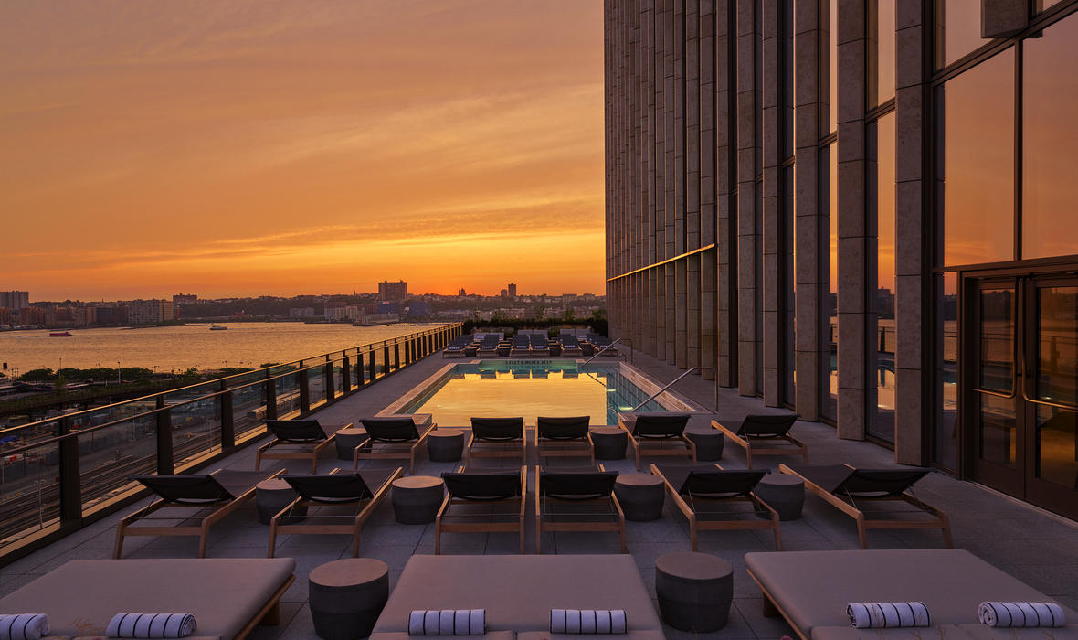 Additionally, you can expect impressive gastronomy, a spa with a variety of treatments, and a stunning outdoor pool with views of the skyline and the Hudson River. The Equinox Hotel is the ideal place for those who do not want to compromise on a healthy and active lifestyle while traveling, without sacrificing luxury and comfort.