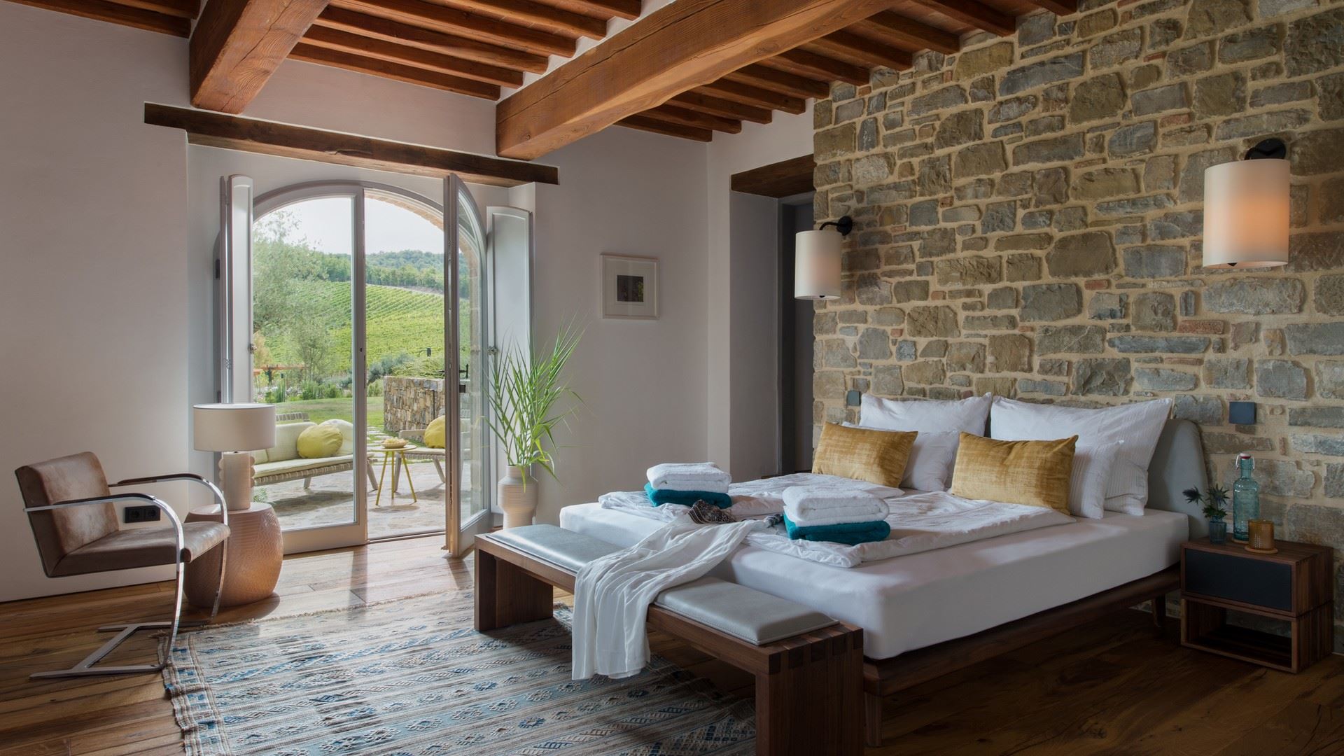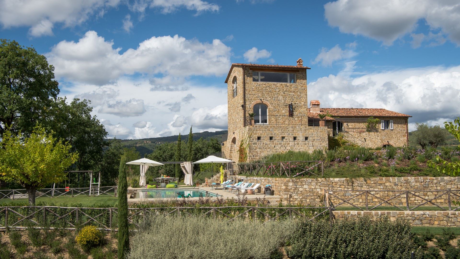 Castiglioni, beautifully restored, combines all its original charm with the wonders of the modern world. There is a beautiful pool, a gym, a steam room, and a playground for children, so everyone can relax. Surrounded by forests and vineyards, the view is endless, down the valley to Radda in Chianti and over the local vineyards and olive groves. Castiglioni is located in the Chianti Classico region, part of the Tenuta di Carleone estate, which produces its own world-class wine and olive oil.