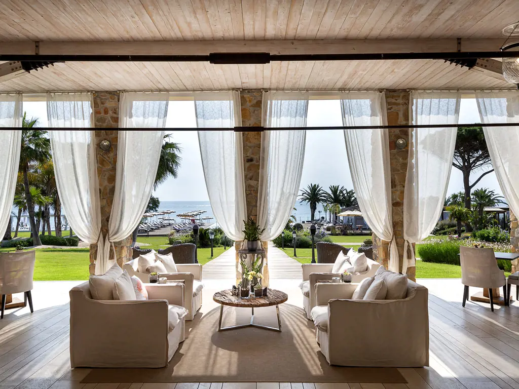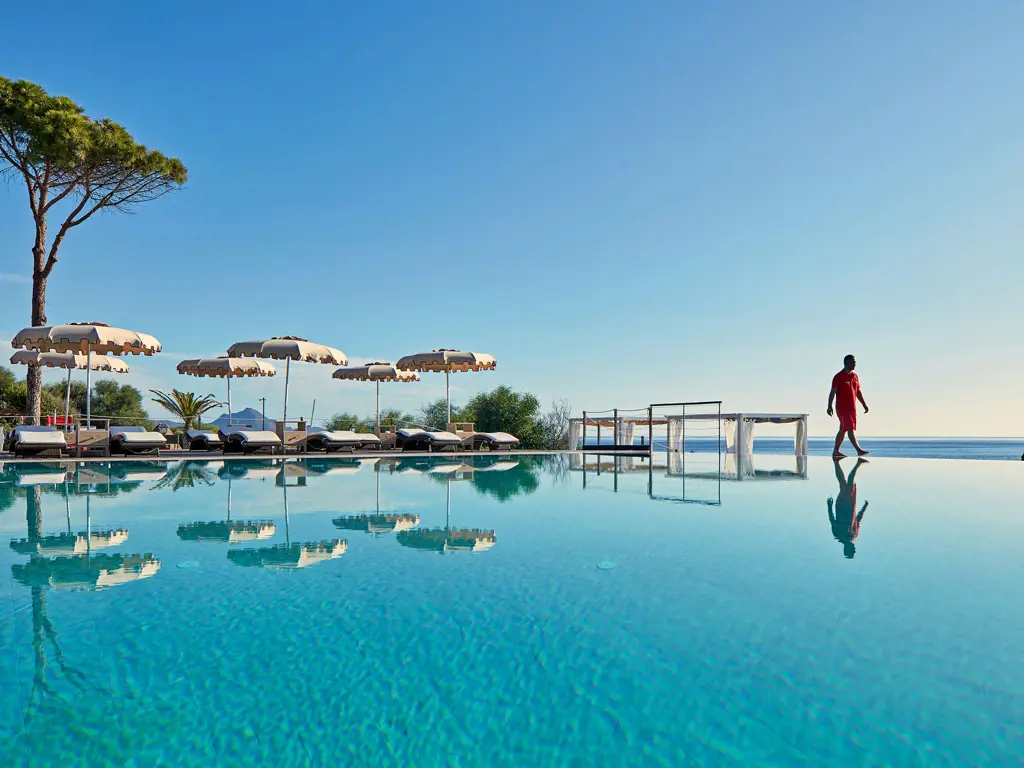 Das Hotel zeichnet sich durch seinen exklusiven Service und die Liebe zum Detail aus. Die 50 eleganten Zimmer und Suiten verbinden modernen Komfort mit klassischem italienischem Stil. Hier können Sie entspannte Tage am privaten, weißen Sandstrand oder am Infinity-Pool genießen.